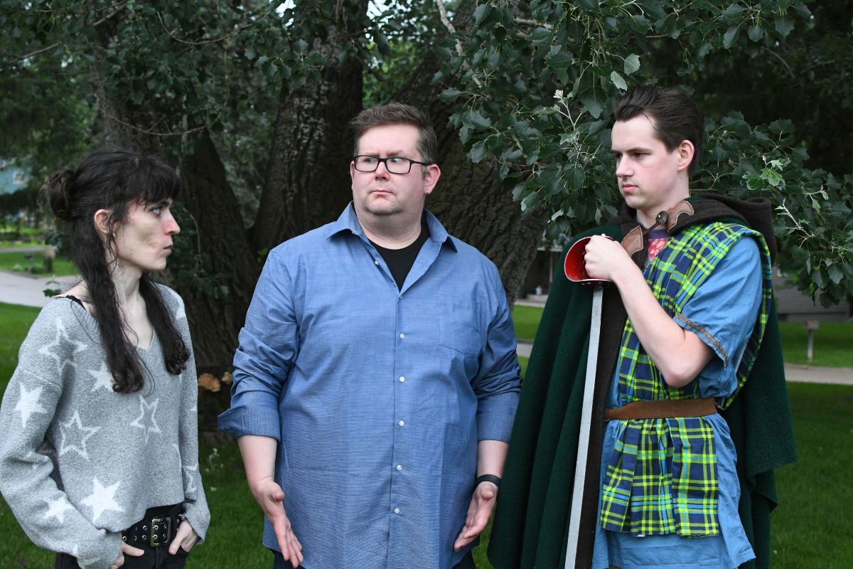 To Reidan Fredstrom, whose Facebook post about a production of Macbeth where no one's allowed to say Macbeth sparked the initial idea for the script
